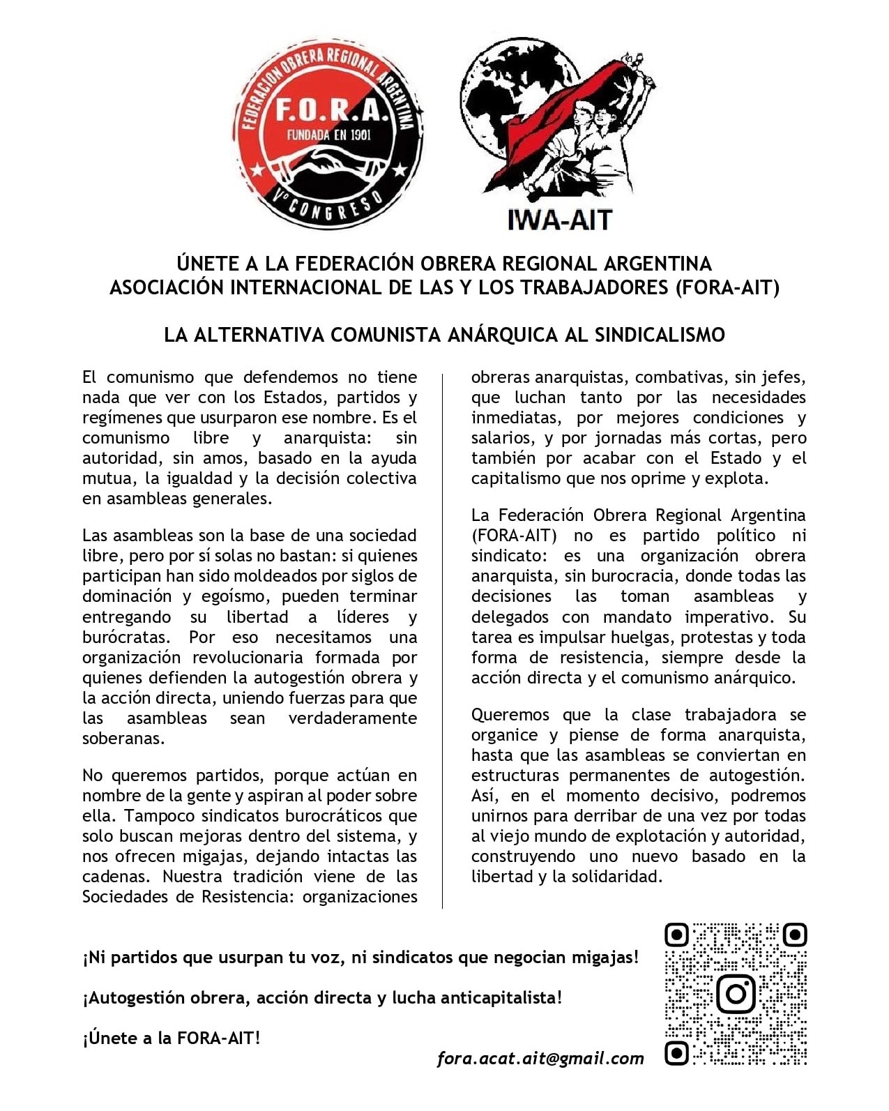 Compañerxs de Argentina, pueden asociarse a la FORA-AIT.