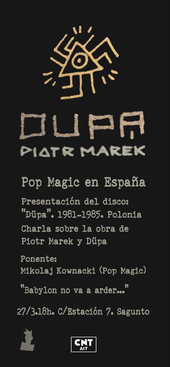 Nos complace invitarles a un evento especial dedicado a la obra de Piotr Marek y su banda DÜPĄ, que tendrá lugar el viernes 27 a las 18:00 en el espacio cultural de la CNT-AIT en Sagunto.