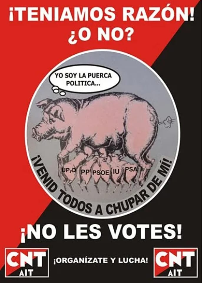 Los anarquistas queremos una sociedad de abajo arriba, sin lideres ni amos.