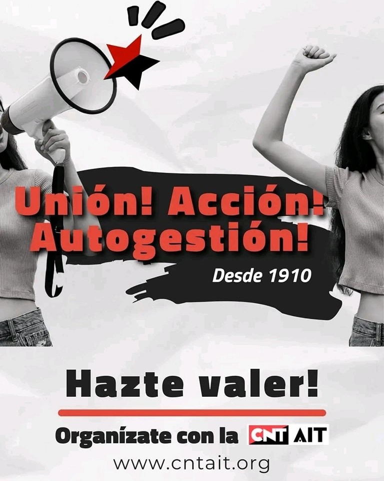 ¡Unión! ¡Acción! ¡Autogestión! CNT/AIT-IWA Posted on 23 de mayo de 2025 por comunicacion ¡Unión! ¡Acción! ¡Autogestión! Organízate con la CNT-AIT! Hazte valer! Sin subvenciones del estrado, sin liberad@s sindicales. Un sindicato entre iguales.Desde 1910. cntait.org/sindicatos #Anarcosindicalismo#CNTAIT#AIT#IWA correo imprimir compartir compartir compartir compartir compartir compartir