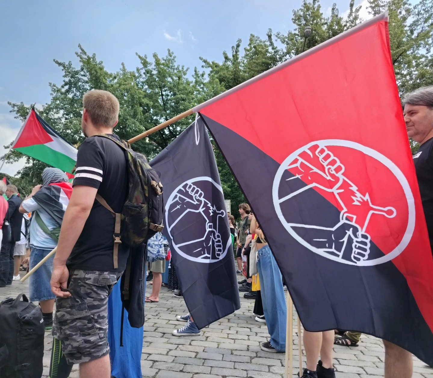 Sin embargo, el sábado 19 de julio participamos en la manifestación pro-palestina como un bloque visible y en mayor número de lo habitual. Llegamos bajo pancartas antimilitaristas con el símbolo de un rifle roto. Los mismos que también usan nuestros amigos israelíes, que se niegan a asesinar a sus hermanos y hermanas palestinos. Arrancan o queman sus órdenes de reclutamiento en el ejército israelí y prefieren enfrentarse a la persecución y encarcelamiento. Esta es también la manera de detener la guerra y el genocidio, porque sólo los humanos pueden hacerlo a través de las cabezas de líderes y políticos. Resistencia a la guerra, cooperación y cercanía entre israelíes y palestinos. ¡Juntos!
