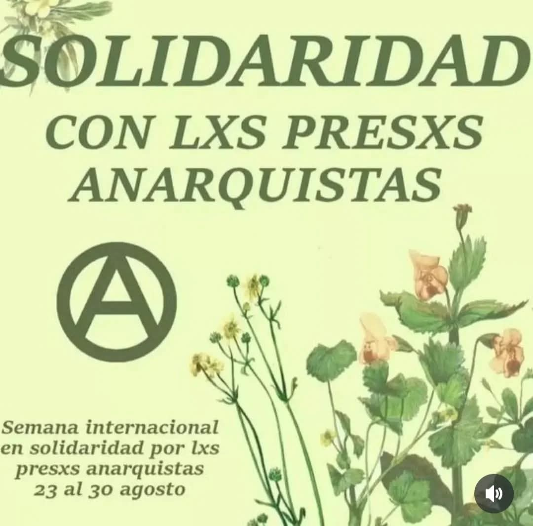 Se realiza un llamado a acciones durante la Semana de Solidaridad con les Preses Anarquistas del 23 al 30 de agosto de 2025!
