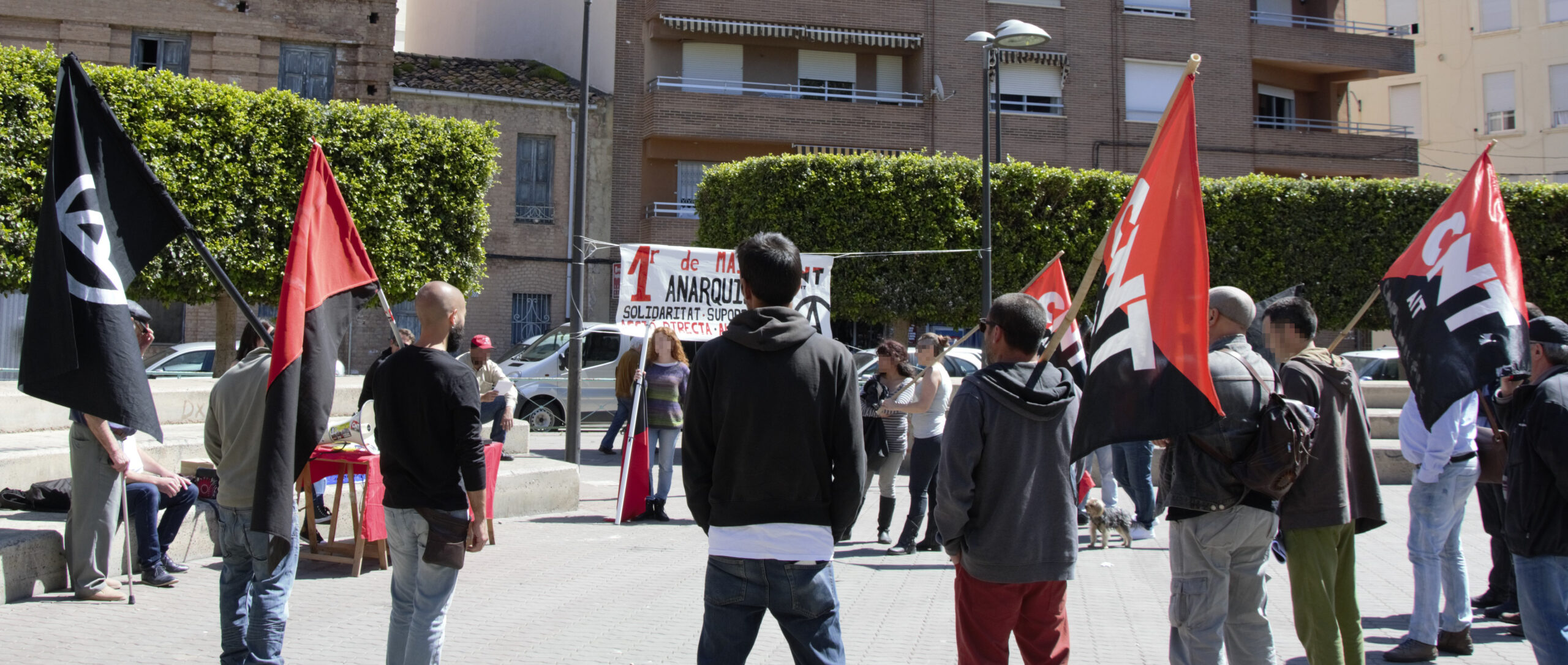 A partir de las 11h una treintena de personas nos hemos manifestado en la Plaza de la Morería, entorno a la pancarta «1º de Mayo Anarquista. Solidaridad, Apoyo Mutuo, Acción Directa, Autogestión». Seguidamente varios compañeros, tanto del sindicato de Sagunt, como de varios sindicatos de la Regional de Levante, han tomado la palabra para leer nuestro manifiesto y hacer varios discursos que han recordado los orígenes del 1º de Mayo, y han abundado en la necesidad de la organización obrera anarquista para la abolición del trabajo y la emancipación social.