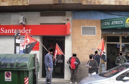 Hoy, jueves 6 de marzo, la CNT-AIT Sagunt nos hemos reunido en las dos sedes que el Banco Santander tiene en la localidad, para reclamar la readmisión del compañero Ángel, despedido por el banco en Madrid.