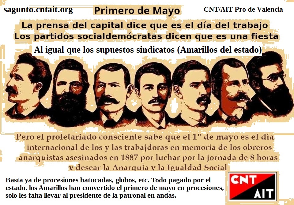 Este día fue reivindicado como día de lucha Por la AIT-IWA en memoria de los compañeros Anarquistas asesinados por el estado en Chicago, hace 139 años.