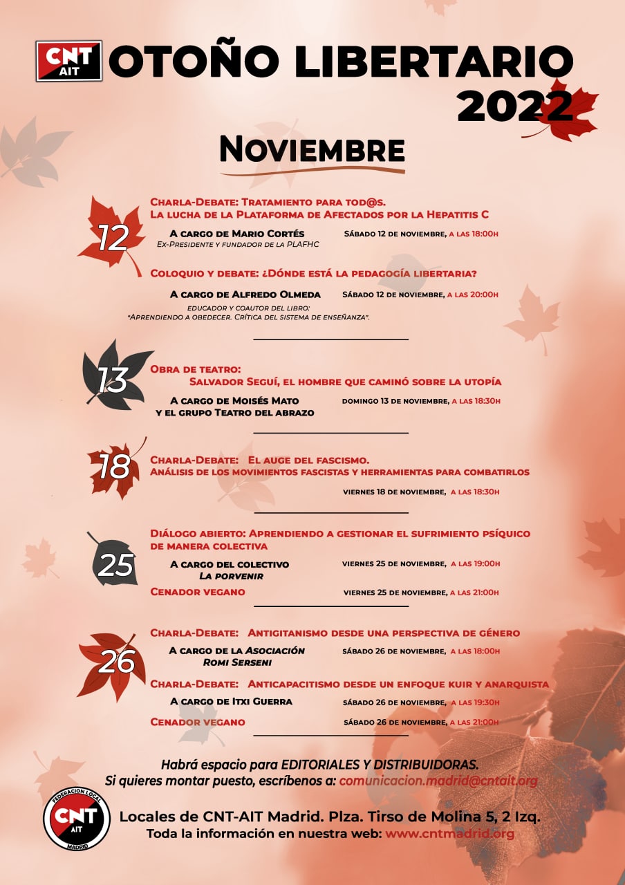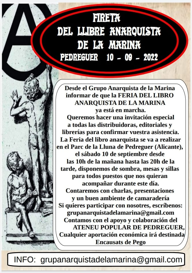 L’acte será a la seu de la CNT-AIT del Camp de Morvedre, a l’Av. del País Valencià, 10, baix, de Sagunt.