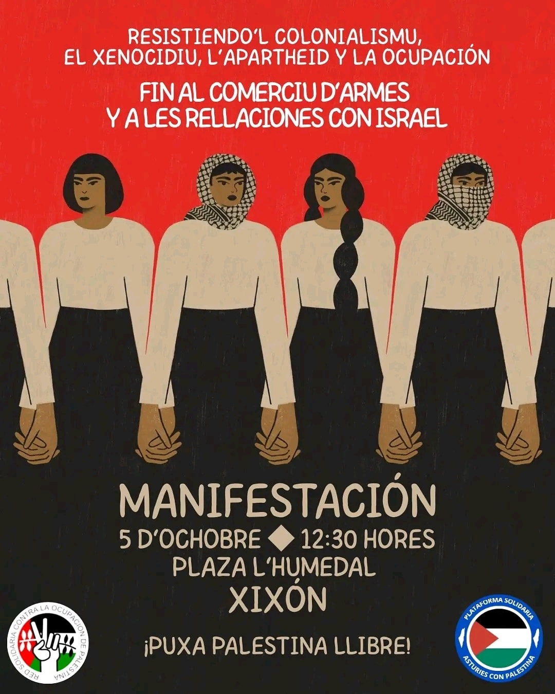 Ye por eso que el 4 d’ochobre en Llanes y el 5 en Xixón saldremos a les cáis p’amosar el nuesu sofitu al pueblu palestín y a la so resistencia.