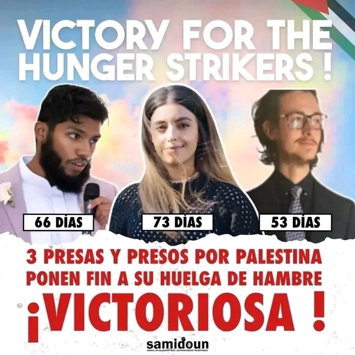 3 de lxs 4 presxs por Palestina en huelga de hambre en las cárceles británicas interrumpen su huelga tras la pérdida de un contrato de 2000 millones de libras por parte de Elbit Systems.