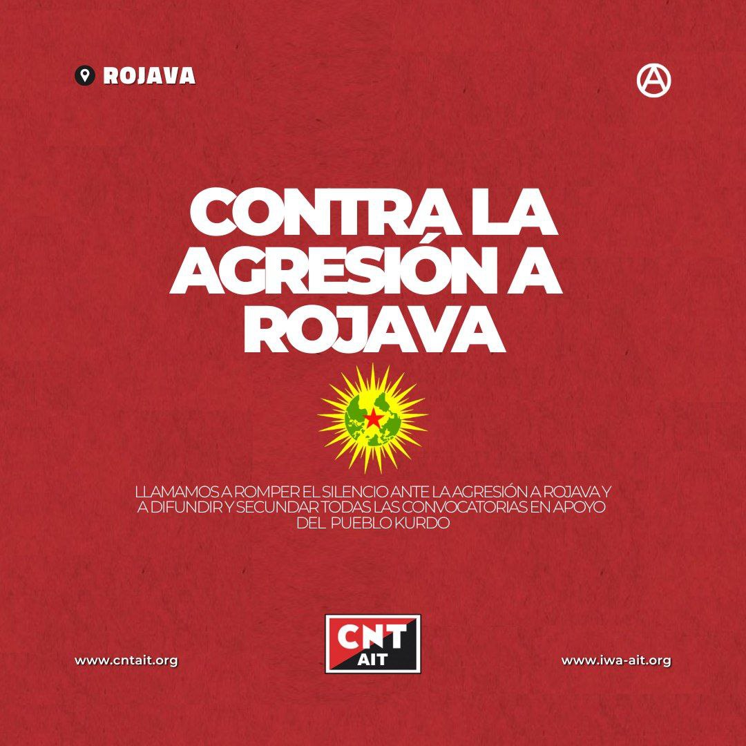 Tras la masacre cometida por el Estado Sirio el 6 de enero contra el pueblo kurdo en Alepo y la ola de refugiados que ha desencadenado, la CNT-AIT llamamos a romper el silencio ante la agresión a Rojava y a difundir y secundar todas las convocatorias en apoyo del pueblo kurdo.